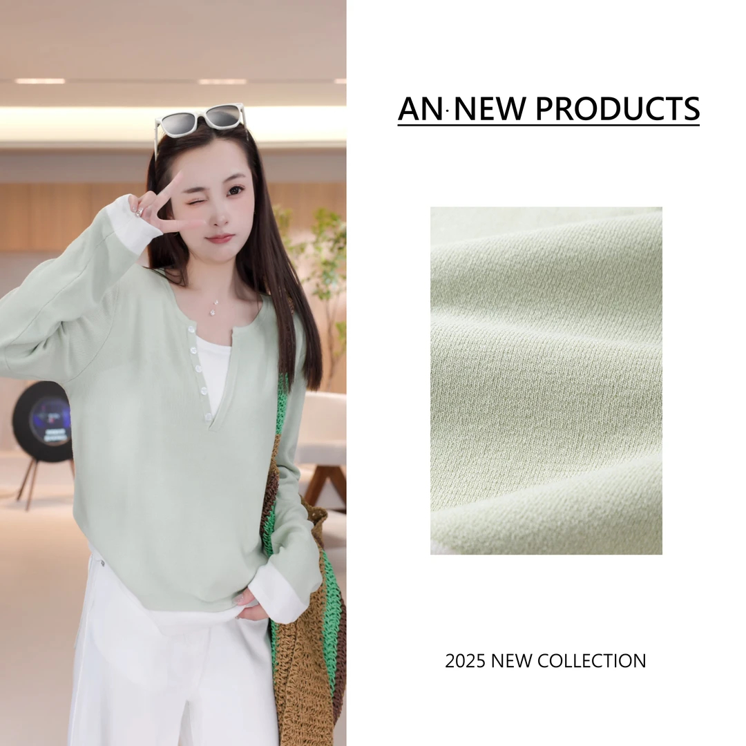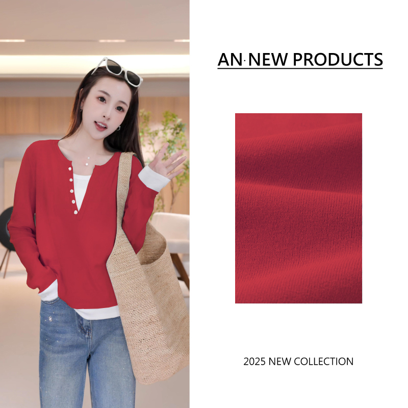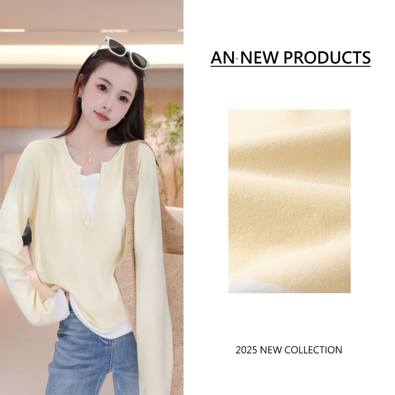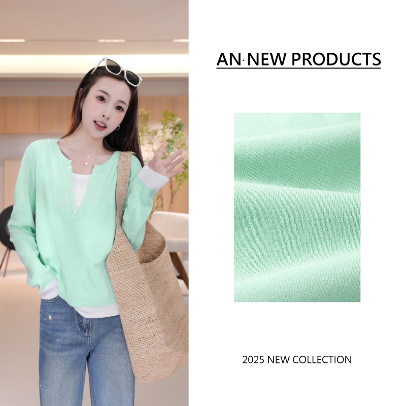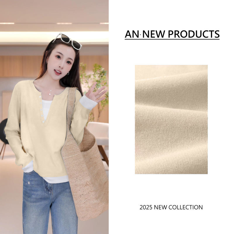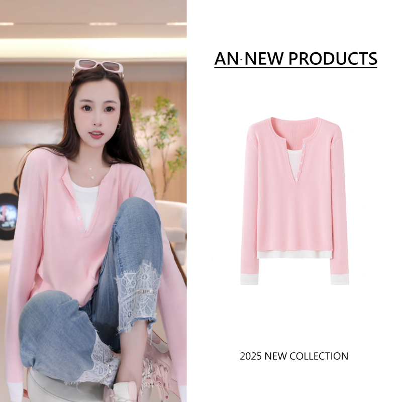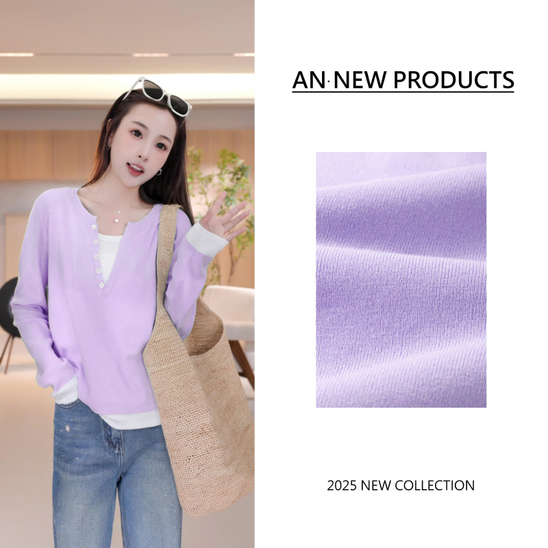 2025新款氣質顯瘦寬鬆假兩件針織衫